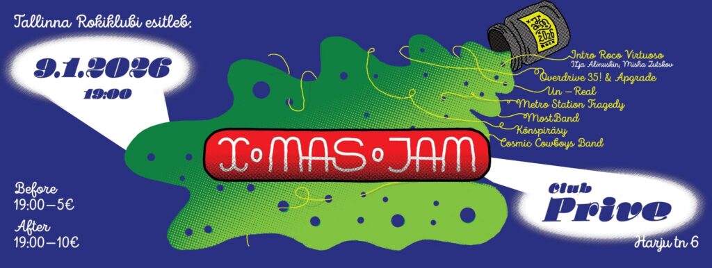 9 января выступаем на XMAS JAM – 2026. 9 января группа Un-Real примет участие в ежегодном концерте Таллинского рок-клуба XMAS JAM. Мероприятие пройдёт в клубе Prive. Вернуться к главной навигации по сайту
